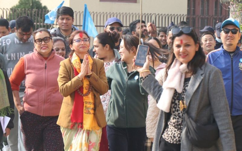 माइकिङ गर्नेले ‘आदरणीय टोलबासी दाजुभाइ दिदीबहिनी, यहाँहरूको उम्मेदवार तोसिमा कार्की तपाईंको घरदैलोमा आइपुग्नुभएको छ’ भनिरहेका थिए । चोकमा केही मतदाताहरू कार्कीलाई पर्खेर जम्मा भइसकेका थिए । माइकिङ गर्दै कार्यकर्ता अगाडि नै आइपुगे पनि उम्मेदवार कार्की भने पाँच मिनेट ढिलो आइपुगिन् । उनले सडकबाटै घरको छत वा बार्दलीबाट हात हल्लाउने मतदातालाई हात जोडेर नमस्कार गर्दै अघि बढिन् । चोकमा जम्मा भएका महिला मतदाताहरूले तोसिमालाई जितको शुभकामना दिँदै अंगालो हाले र सबैले आ–आफ्नो मोबाइलबाट सेल्फी लिए ।